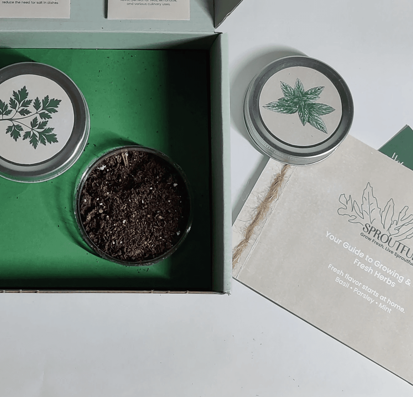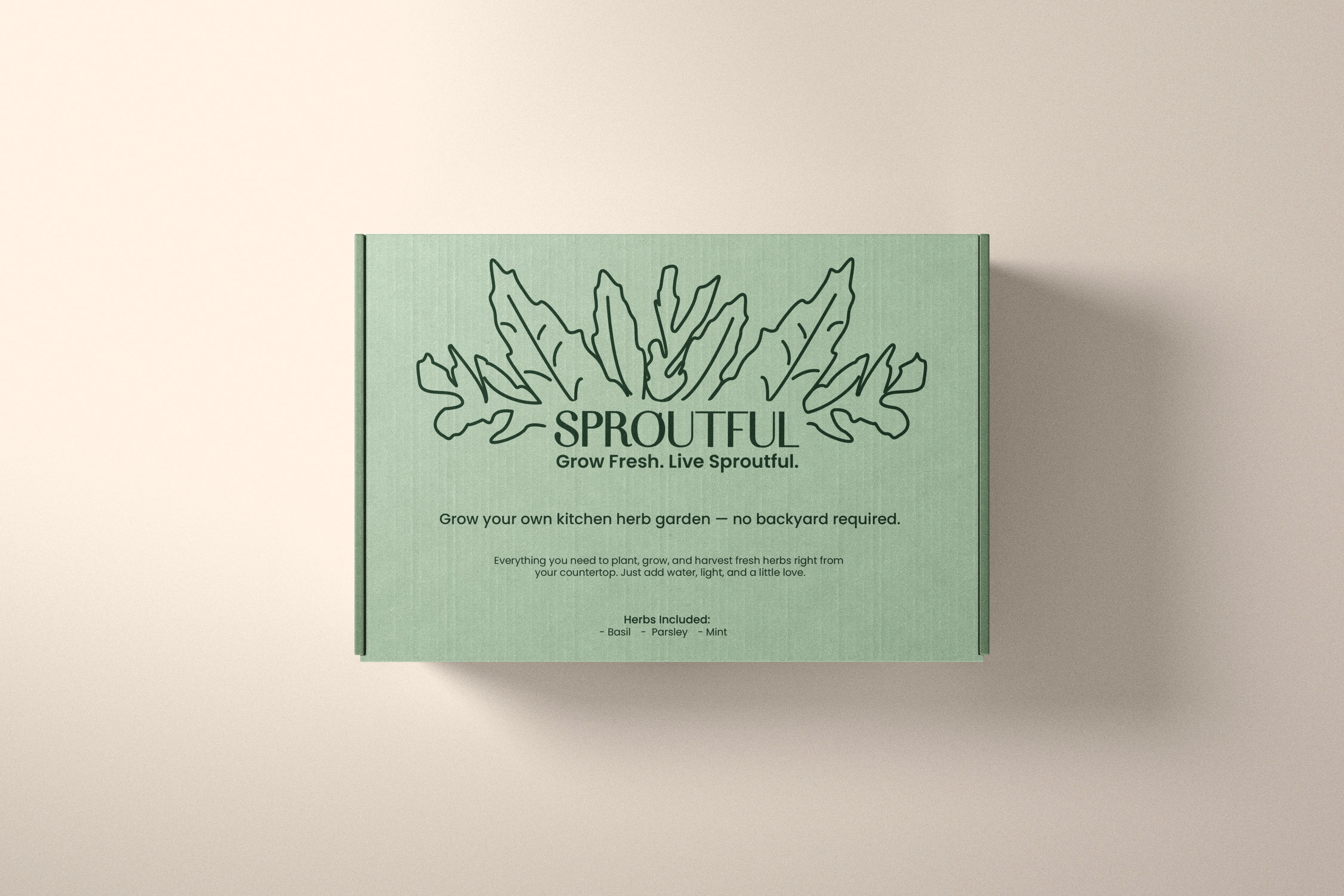 Sproutful is a compact herb garden starter kit designed to comfortably sit on a windowsill while providing fresh, homegrown herbs with minimal space requirements. The product targets urban residents interested in growing their own herbs but with little to no prior gardening experience.