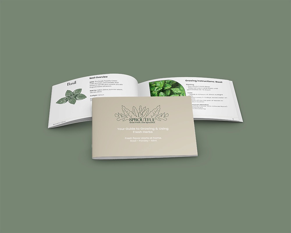 The goal of the project was to create a kit that balances functionality with refined, countertop-worthy aesthetics. The design emphasizes simplicity, ensuring that the product feels approachable rather than intimidating. Clear, concise instructional materials were developed to guide users through the growing process, creating a seamless and user-friendly experience.